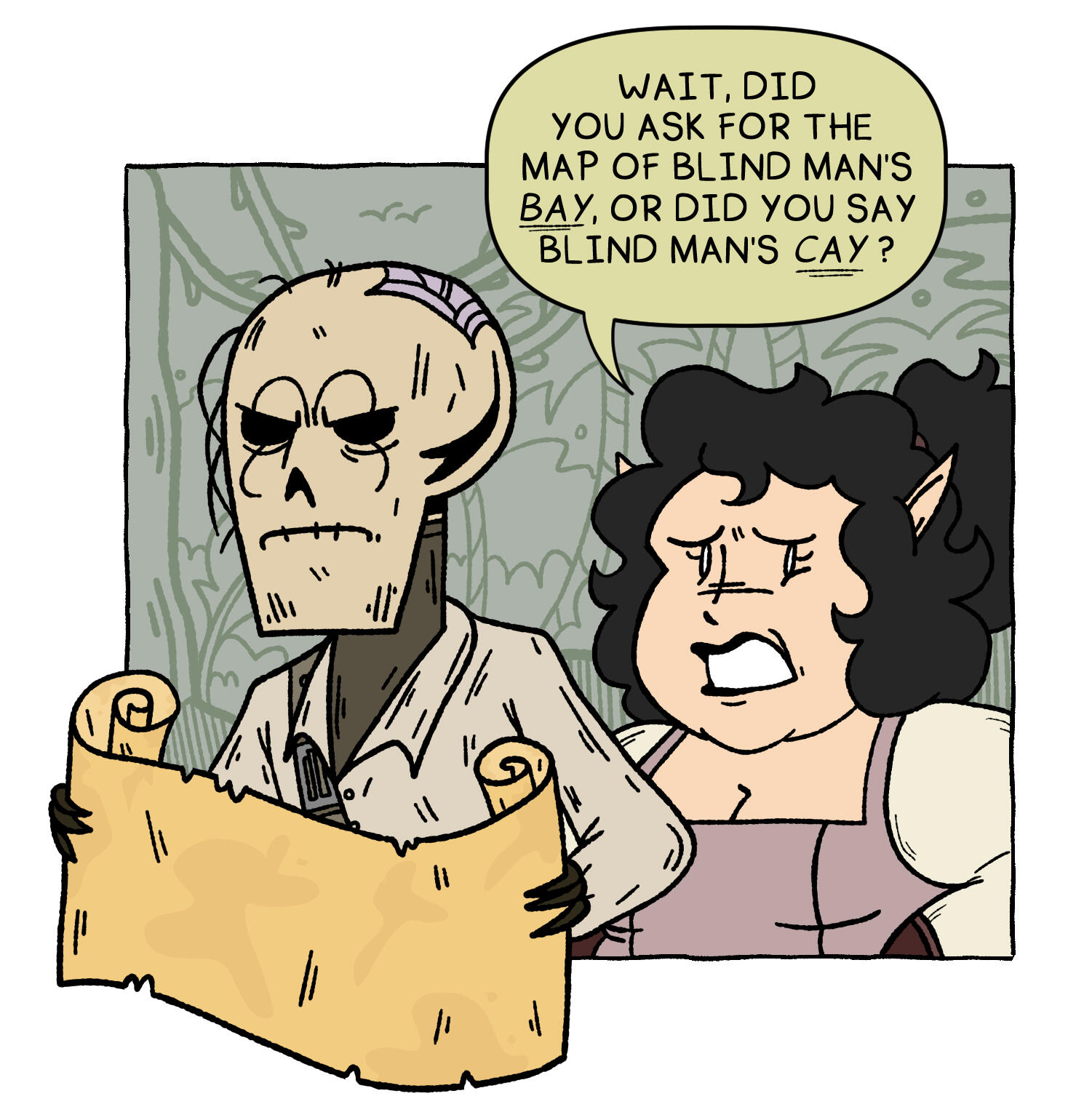 While the Horatio Empire is modeled after the history of The British Empire, the Kodos Konfederation is based on the Spanish Conquistadors. While the Horatio Empire’s main reason for conquering is focused primarily on money, religious influence is maybe third reason, perhaps an annotation underneath “Increased Power.” However, the Kodos Konfederation’s priority is to spread their religon—wether you want to practice it or not.The forts the Kodos build are prime targets for pirates, since—although they fight back—they’re stationary targets filled with plunder. It was in one of these forts that “Sawbones” Sawyer Cain first got his zombic crew (as seen in Episode 4, “The Return of the Pillaging Dead Part I”).